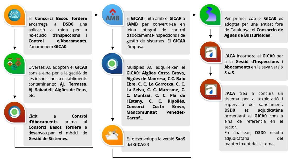 Initially, gica0 was developed under the guidelines set by the Consorci Besòs Tordera, being currently used by a multitude of Public Entities and City Councils.